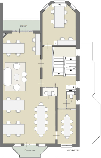 An office for 20 people including a private meeting room, as well as an office for six people. On the floor you’ll also find a phone booth and a shared pantry in the hallway, complete with Quooker and fresh-bean coffee machine.